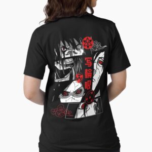 “تيشورت قطن ناعم باللون الأسود مع تصميم شارينغان من أنمي ناروتو”