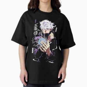 “تيشورت قطن ناعم باللون الأسود مع شخصية سوجيرو غوجو من أنمي جوجوتسو كايسن”