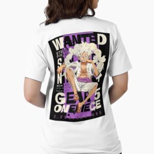 “تيشورت قطن ناعم باللون الأبيض مع شخصية لوفي – جير 5 من أنمي ون بيس”
